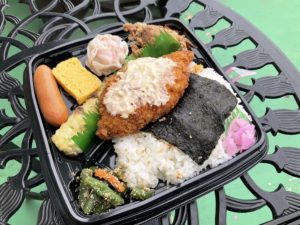 「めちゃのせ海苔弁当」という名前の割に、やや満腹感に欠けるので減点。
